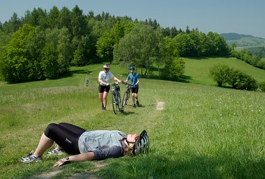 17.6.2007, Plostina, 74km. PLostina opet dobyta, Vojta prozradil ze jiz par tydnu doma tajne cvici sklapovacky aby se nezesmesnil jako posledne :-) A dokazal to :-) Po ceste odloveny 2 geocache, treti u zamku nam proklouzla mezi prsty.