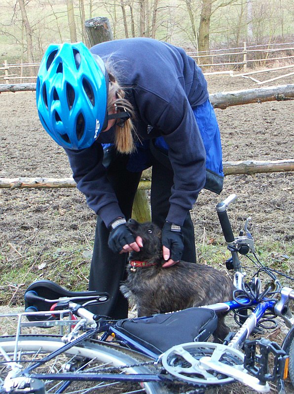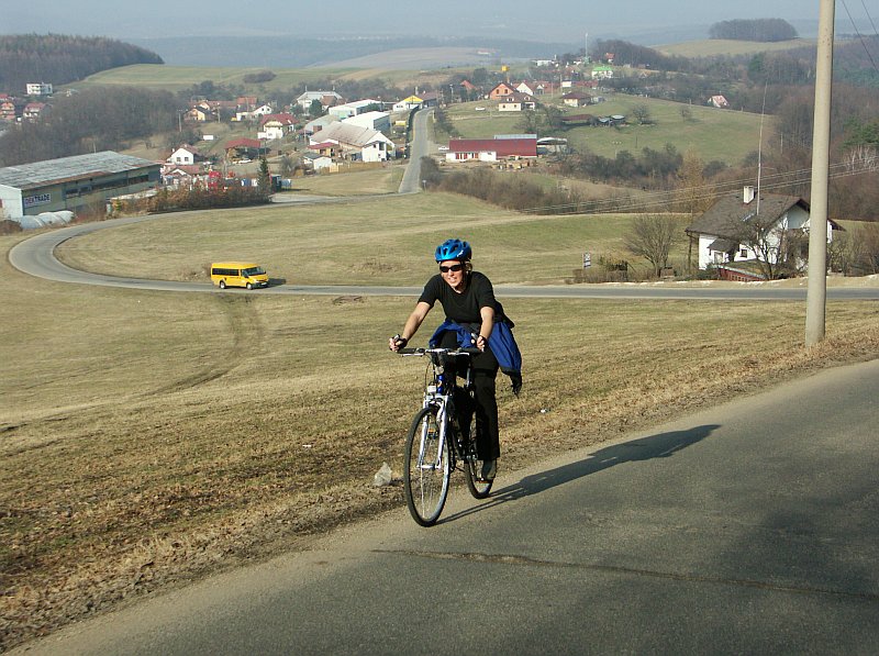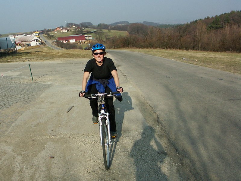 DRTIC29.03.2005 20:09 - Cas 16:10 a sraz u odbocky na Jaroslavice :-) Puvodne sem si myslel ze tady zachytim posledni optimisticky Bobuv usmev, ale prekvapila, kopec, nekopec, stale neztracela dobrou naladu.