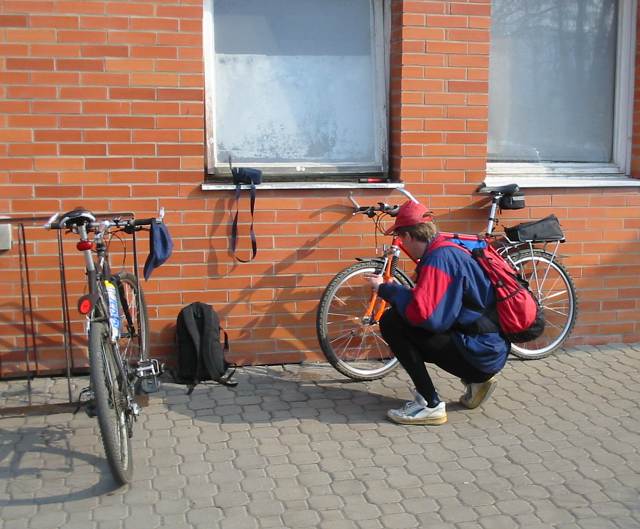 DRTIC 30.03.2003 16:38 - Sraz u nemocnice. Zdena jeste nahustil duse, dodali jsme si odvahy pohledem do mapy, zdena prohodil ustepacnou poznamku na ty salaty ve skupine B a jelo se :-)
