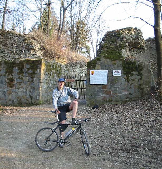 DRTIC 30.03.2003 16:59 - Po vrazednem sjezdu s kopce na nas zcistajasna juknul Brumovsky hrad :-)