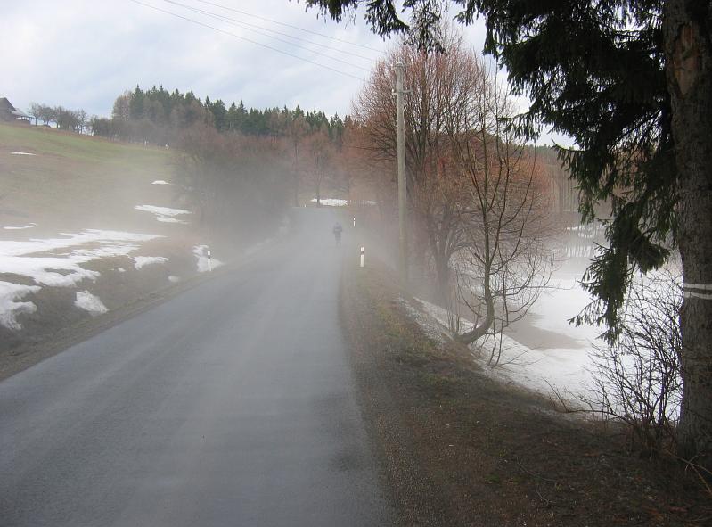 DRTIC 20.03.2004 20:55 - S narustajici nadmorskou vyskou pribyvalo snehu a zvlast efektni byly prujezdy mlhou :-)) Moc se mi to libilo.