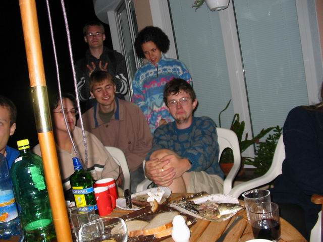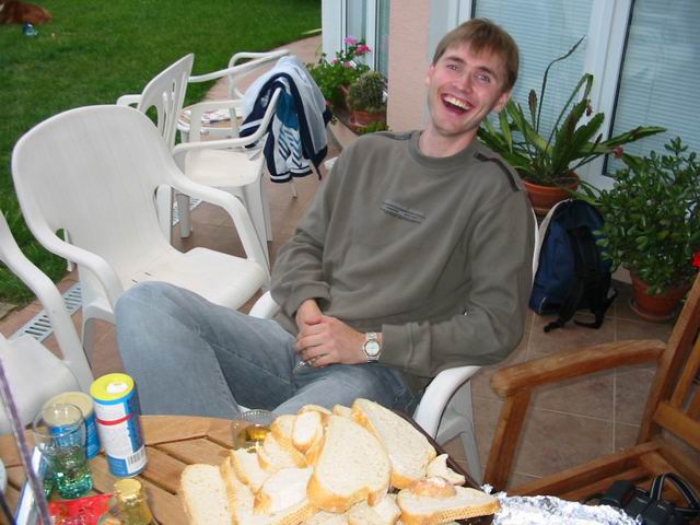 Woody 23.06.2003 21:10 - Roman obdivne pozoruje flasku s vinem asi.. Zeby dosel colarum? hihi