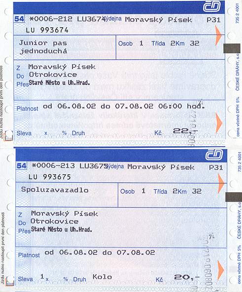 DRTIC 09.08.2002 10:24 - Janinka nas se Zdenou v Moravskem Pisku opustila a potupne posledni kilometry zdolala ve vlaku :-)