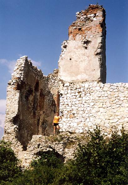 DRTIC 09.08.2002 10:12 - Tajemny hrad v Cachticich. Navzdory ponure historii spojene s Cachtickou pani ktera mela udajne zabit kolem 600 panen se Janinka odvazila az na misto, s tim ze uz ji nic prej nehrozi :-))