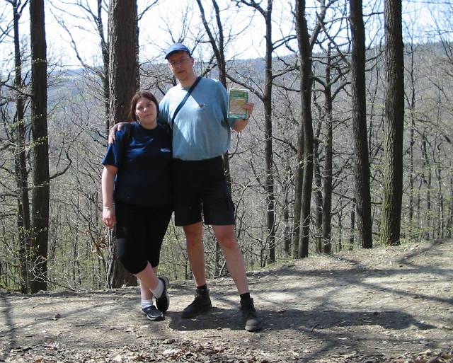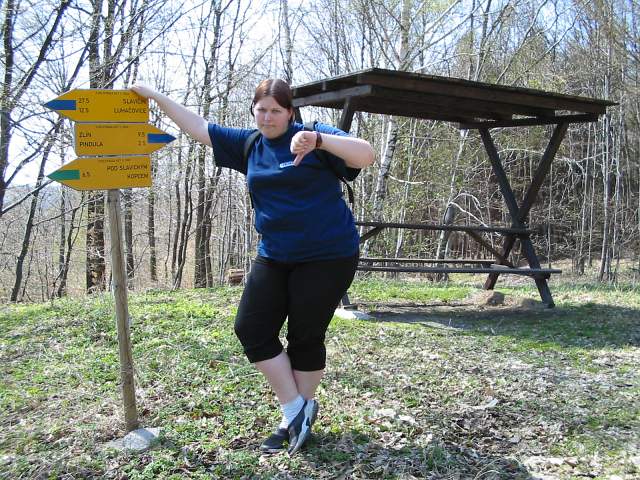 DRTIC 21.04.2003 22:41 - Nic moc vyhlidka..viz palec :-)) Pred nami kopec jak svina a do Luhacovic co by kamenem hazel cely den a zbytek dosel.
