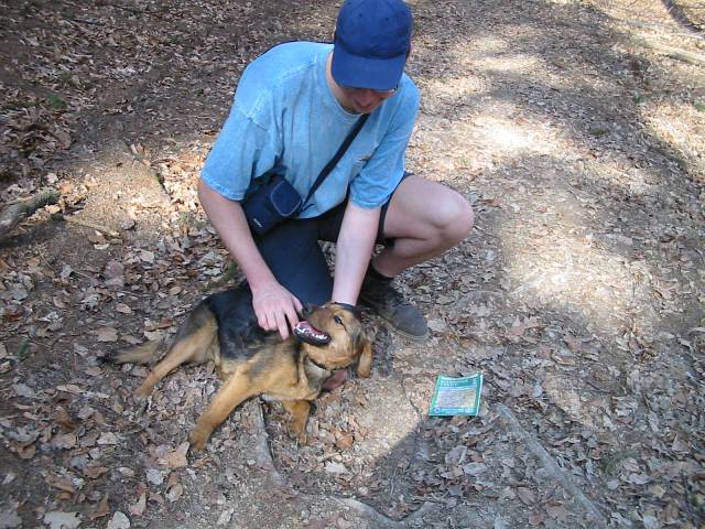 DRTIC 21.04.2003 22:37 - Janca domlouva Ferdovi aby sel domu za paneckem. Sli jsme stale dal lesem a Ferda se nemel k navratu. Vypadalo to ze se rozhodl zmenit majitele :-)