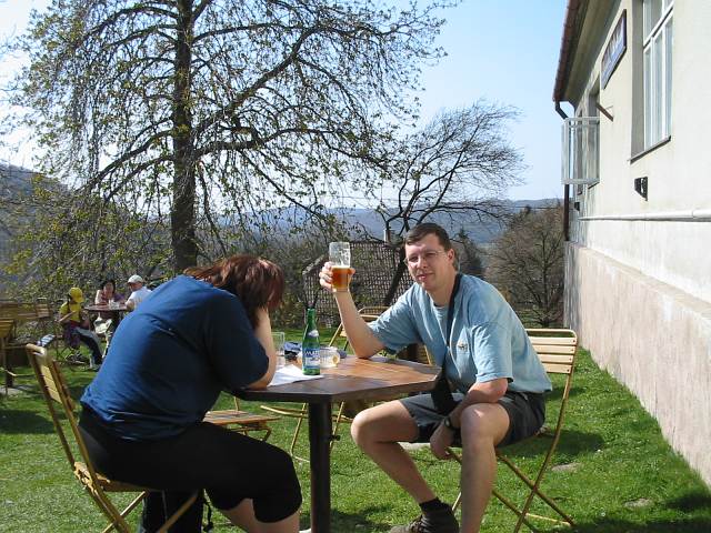 DRTIC 21.04.2003 22:46 - Hostinec na Malenickach. Pivo jak kren. :-) Konfrontace s turistickou mapou ohledne nasledujici trasy a nasledna Jancina deprese :-)