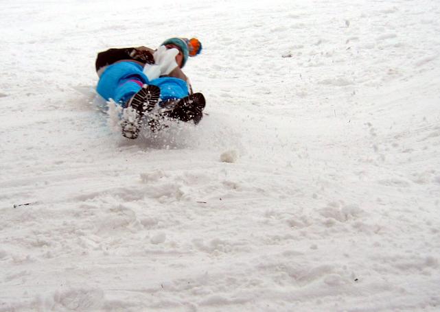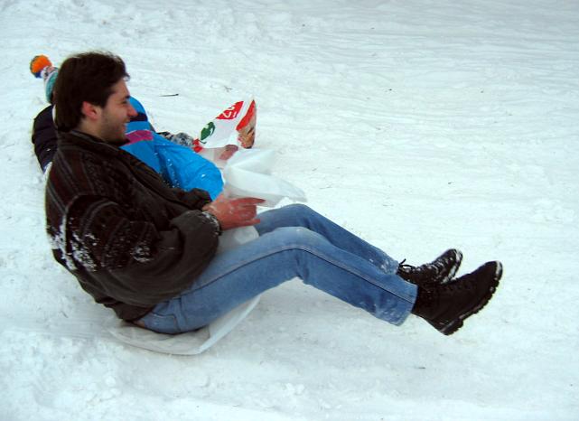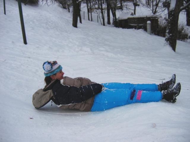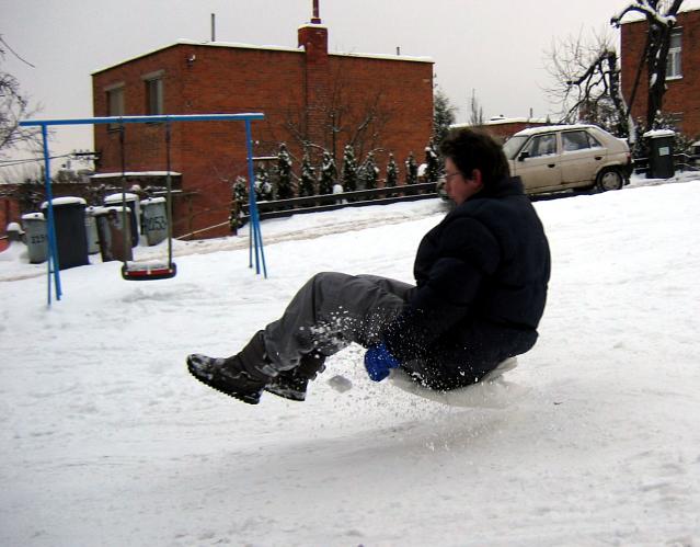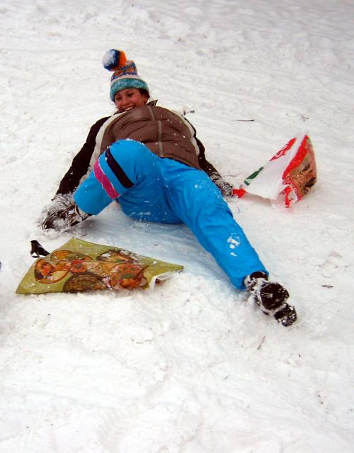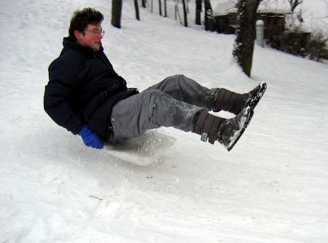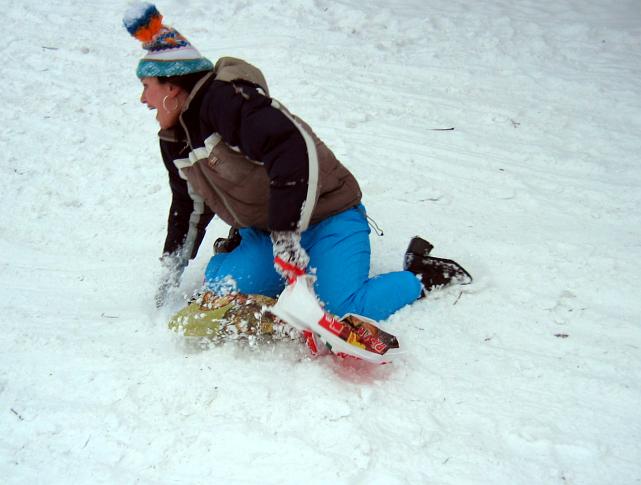 Lena 12.01.2004 21:14 - Někteří se snažili na trati vkládat originální prvky pádlování - ale stejně se na konci cvakli a nabrali si sníh na palubu