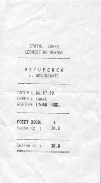 duchman 31.12.1979 23:02 - Podle vstupenky je jasne videt ze jsme jako tradicne prisli na prohlidku zamku jako posledni turnus (17.00). Holt bylo potreba zmerit signal vsech nasich i rakouskych operatoru a dokonce jsem si vyzkousel ROAMING!!