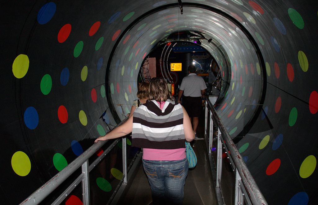 DRTIC 04.11.2009 18:50 - Opet interier, nahore pro autenticnost je asi ve 30m nakreslena obloha. Osvetleni kolisa takze se plynule navozuje dojem urcite denni hodiny. kdo by ostatne lezl ven kde je vedro kdyz muze cely den stravit chozenim uvnitr :-). Tohle nevidet na vlastni bulvy tk tomu neuverim.