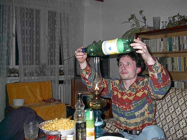xataxa 31.12.1979 23:02 - nocni akce zacina. jako prekvapeni mikymu, jsme se rozhodli podpalit jeho kvartyrek...benzin v kanystru a jako rozbuska slouzil mobil:-))))