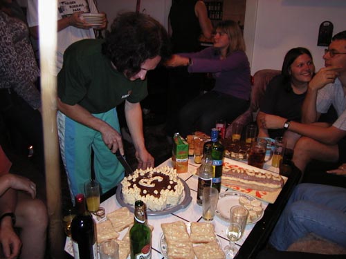 Lena 19.09.2002 8:16 - Paťa rozporcoval dort na velké díly a ženy je pak musely konzumovat na 2x.