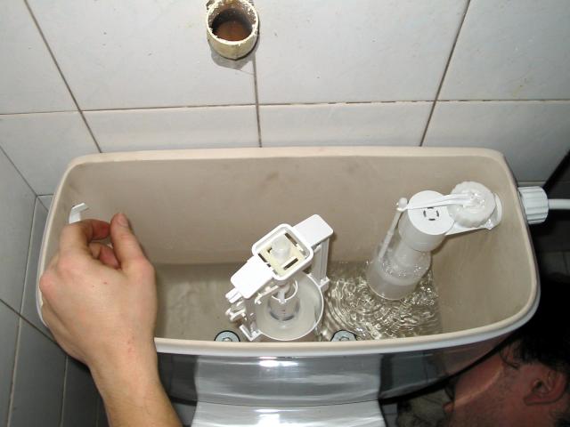 DRTIC 30.10.2003 19:01 - Montaz napousteci nadrze. Tim se tento zachod vyrazne odlisuje od sveho predchudce :-)