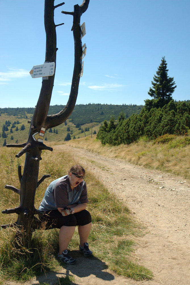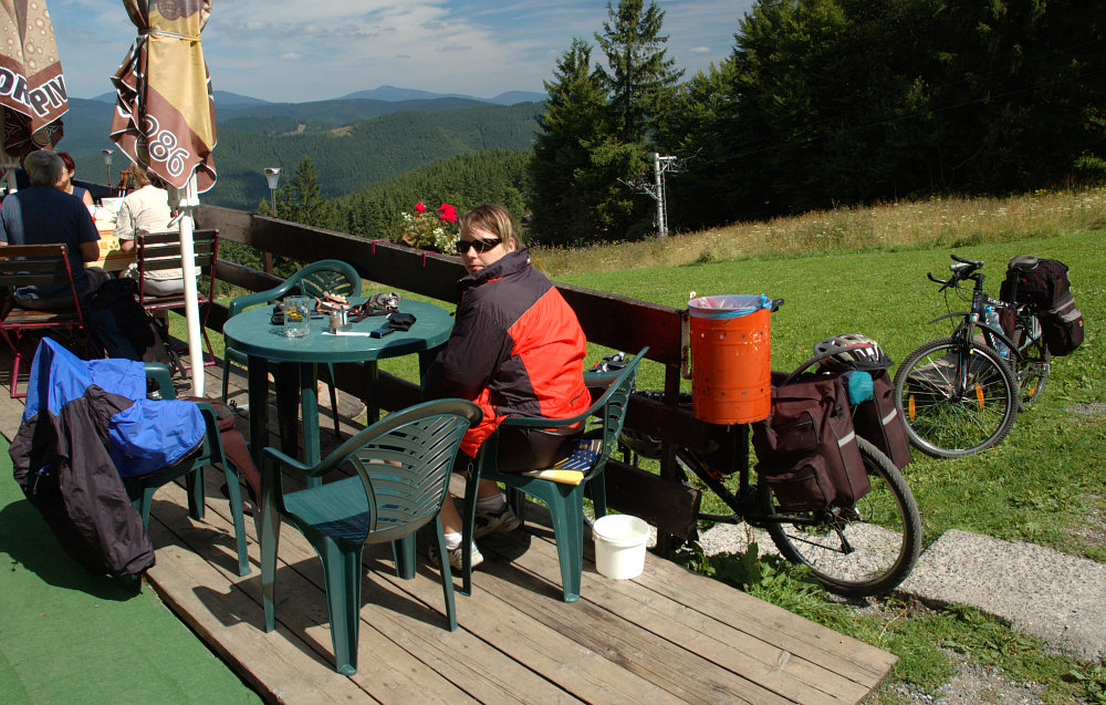 k-obli 16.08.2008 13:02 - Přijeli jsme ke značce Martinské hole - tak jsem otočila kolo, že jedeme konečně dolů - a ono neee, prej ještě nahoru - takže příště vím, že vrchol není Martinská hola, ale Velká Lúka, která je ještě kus cesty..