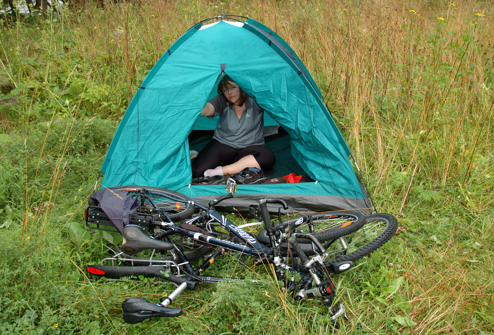 DRTIC 16.08.2008 1:21 - 3h stravene hledanim kempu, penzionu, privatu nebo aspon nejake stodoly kde by nas nechal nekdo vyspat. Nakonec sem zajel do zruseneho kempu s hodne vysokou vegetaci, zamaskoval cestu k nam, kola zamkl na 2 retezy ke stanu a 1 bezpecnostni provazek privazany k zipu stanu, pod spacak pripraveny nuz a do zapadu slunce sme s jancou hlidkovali :-)))