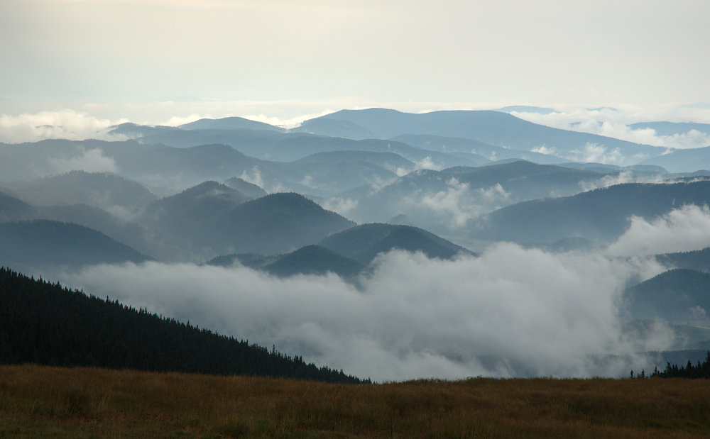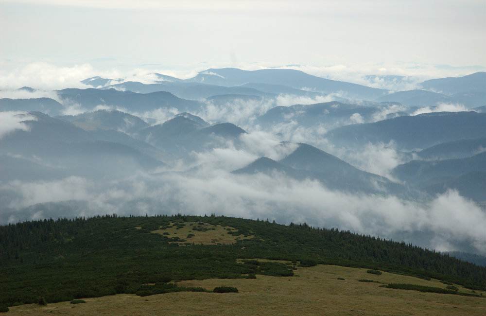 DRTIC 16.08.2008 1:32 - Prvni vyhledy. Tezko to popsat...vsechny kopce byly tak nejak pod nama v oparu nebo mlze. Tohle se v nasich vyskach asi zazit neda.