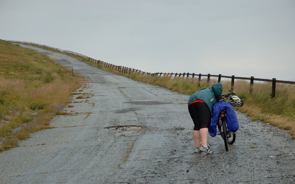 DRTIC 16.08.2008 2:04 - Posledni usek podel nizkych tater frcel klasicky motorak :-)) Cil Pohorelska Masa...vesnice na ktere ma Janca stejne vzpominky jako my na Popice. :-))) Neuveritelne s prominutim prdele kde se nedalo nikde nic koupit, obchody otvirane a zavirane podle toho jak se kdo vyspal, romska populace odhaduju hodne pres 50%, kempy nefunguji, vypalene nebo jen zavrene :-) No radost az na kost :-)