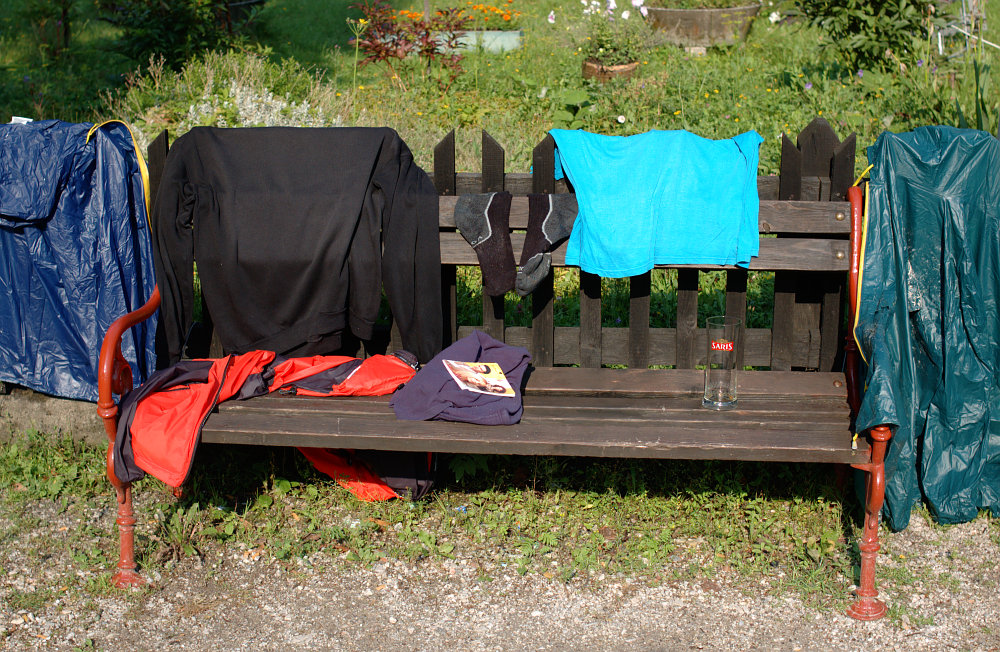 DRTIC 17.08.2008 14:59 - Suche nebylo nic. :-) Ale dole svitilo slunicko a cyklohadry rychle schnou. A nastesti jel za 2h pote rychlik do BB, a tam se nam podarilo chytnout spesny vlak do martina. A dostali jsme stejnou chatku jako posledne. Kdyz jsem se blizili ke kempu, uronil jsem slzu dojeti....doma a v civilizaci :-))