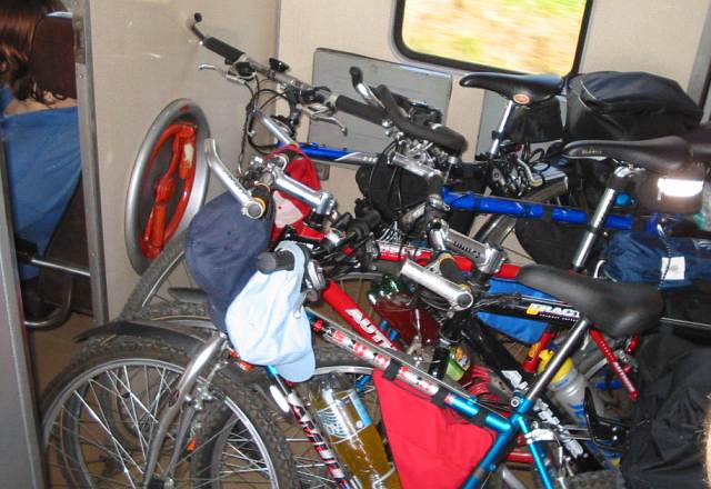 DRTIC 09.08.2003 22:30 - Presun do Moravskeho Pisku :-) Preprava kol ve vlaku probehla bez problemu. Sice jsem o jednu zastavku prejel ale kdo jsme neomylni, ze? :-)))