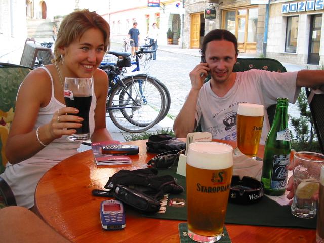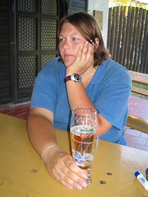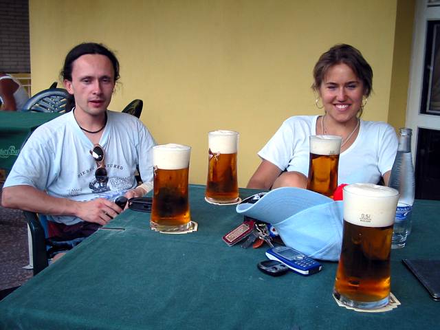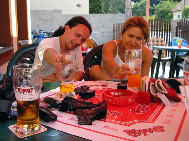 DRTIC 09.08.2003 20:12 - Topolcany a rezany TOPVAR :-) Na fotce docela dobre patrny. Prvni pivo po tolika hodinach slapani , jen zasycelo :-)