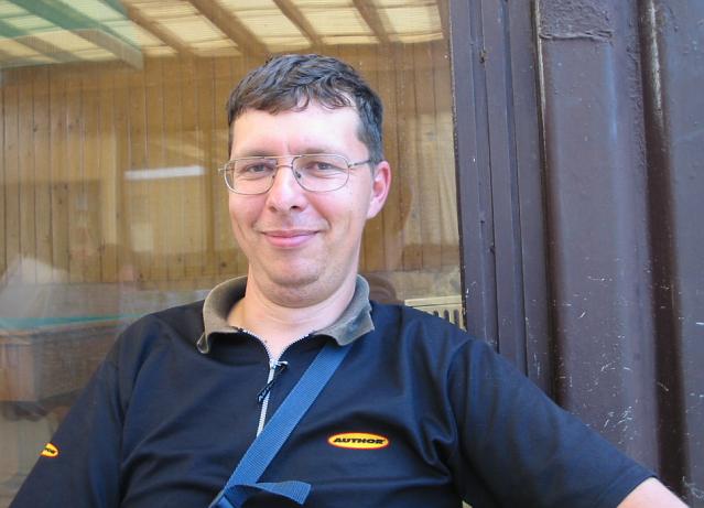Zdenek 25.08.2003 15:30 - Patrik stále ještě s přilbou.Dokonce ve vlaku z bezpečnostních důvodů uvažoval,že si ji ponechá na hlavě.