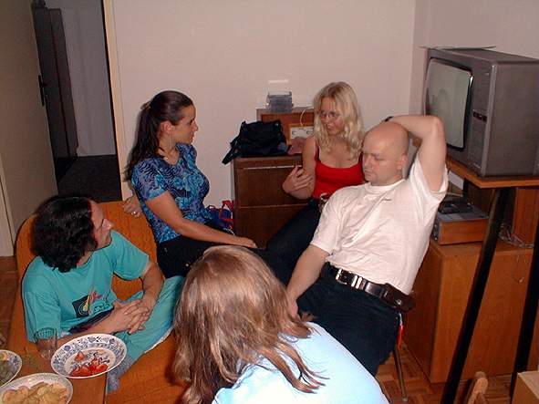 Susan 19.08.2002 16:34 - ... FERY trpel cely vecer z nedostatku pozornosti zenske casti osazenstva ... nakonec mu nezbylo nez delat podlozku na nozky BOBKOVI viz dalsi fota :oDDD