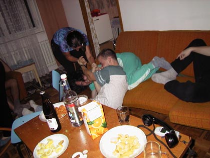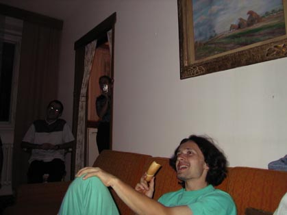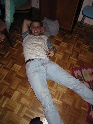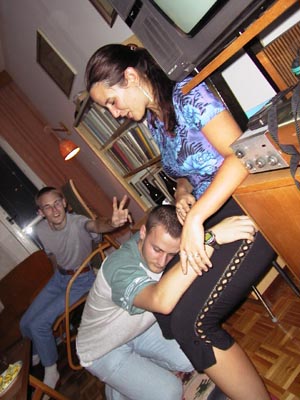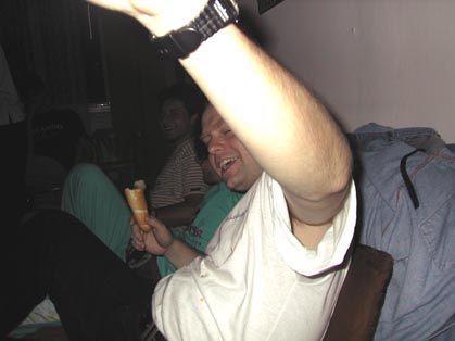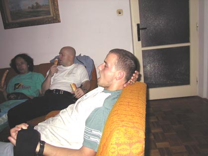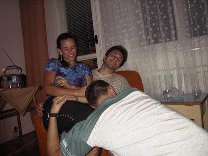 Woody 01.09.2002 20:57 - Tak tady uz je Frankie trosku "nazrany", kdyz mi masiruje nozicky :) Hehe