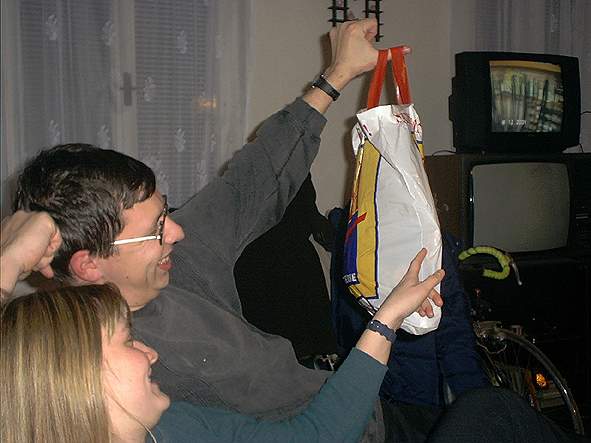 Susan 02.01.2002 19:46 - PATA: Divej se Jani ja ti ukazu jak se narazi takovy soudek ... ne jak Blade co posledne vymaloval tim pivkem cely pokoj - tentokrat to bude v suchu a bezpeci :o))